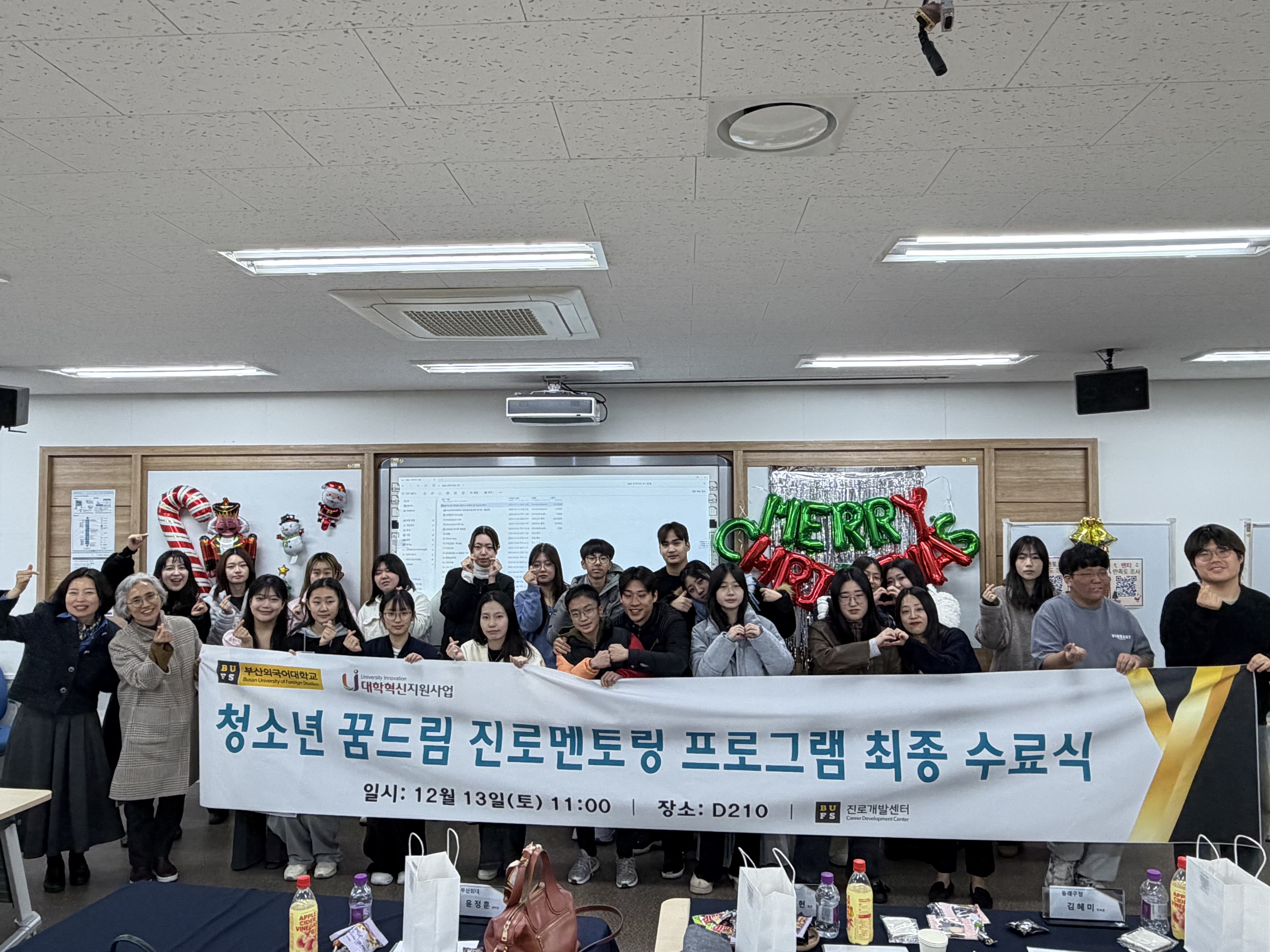 부산외국어대학교(총장 장순흥) 진로개발센터는 지난 12월 13일(토), 교내에서 ‘청소년 꿈드림 진로멘토링’ 2025학년도 하반기 최종 수료식을 개최했다고 밝혔다.