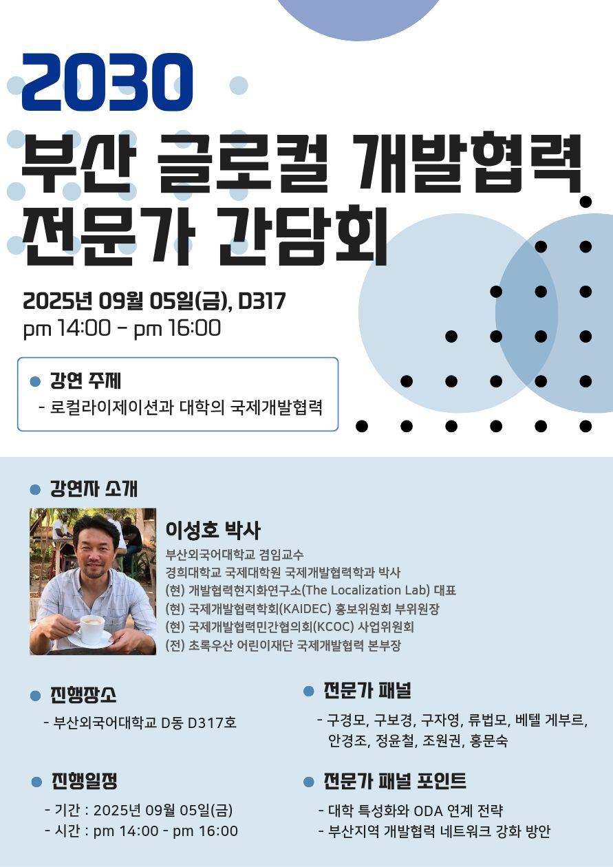[2030 부산 글로컬 개발협력 전문가 간담회] 9월 5일(금) 14:00-16:00
