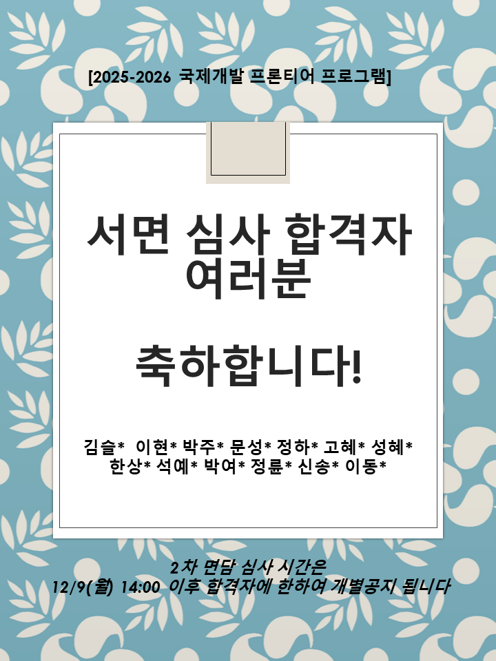 [공지] 2025-2026 국제개발 프론티어 프로그램 1차 합격자 안내