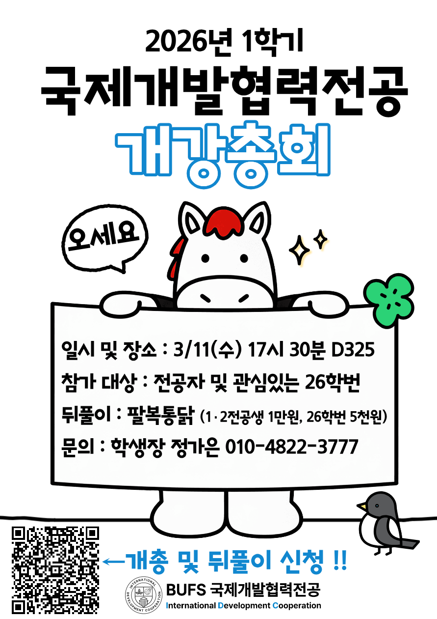국제개발협력전공 1학기 개강총회가 다음주 수요일 오후 5시 30분부터 진행됩니다!