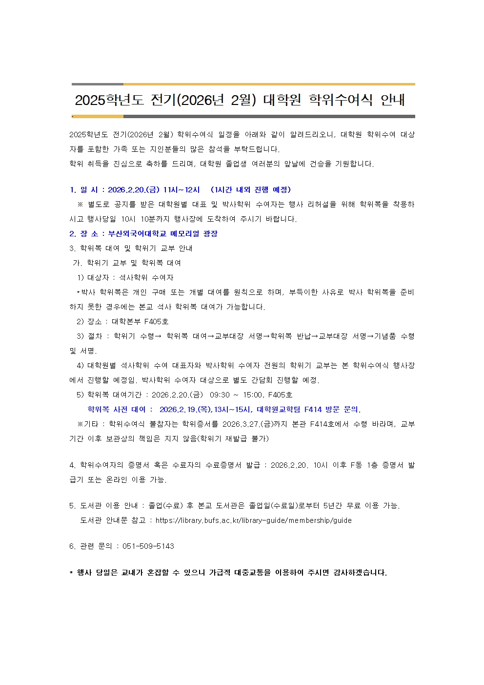 공지사항 2025학년도 전기(2026년 2월) 대학원 학위수여식 안내 Notice regarding the 2025 Academic … 산업경영대학원관리자1일 전조회수8 목록[혁신5-2-22] 대학원생 연구…