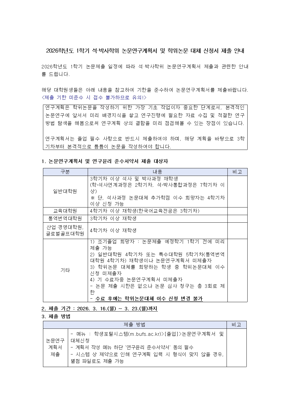 공지사항 2026학년도 1학기 석·박사학위 논문연구계획서 및 학위논문 대체 신청서 제출 안내 첨부파일[붙임1] 석사학위청구논문 대체 신청서.hwp(58.5K) 통역번역대학원관리자3시간 전조회수2 목록2026-1학기 외국인 유학생 위…