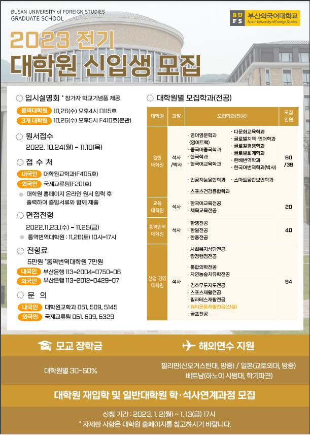학과게시판 공지사항 2023 전기 대학원 신입생 모집 안내 스마트자산경영학과관리자2022. 10. 14조회수725 0 등록된 댓글이 없습니다. [(재)부산여성가족개발원] 202…목록2022학년도 2학기 졸업시험