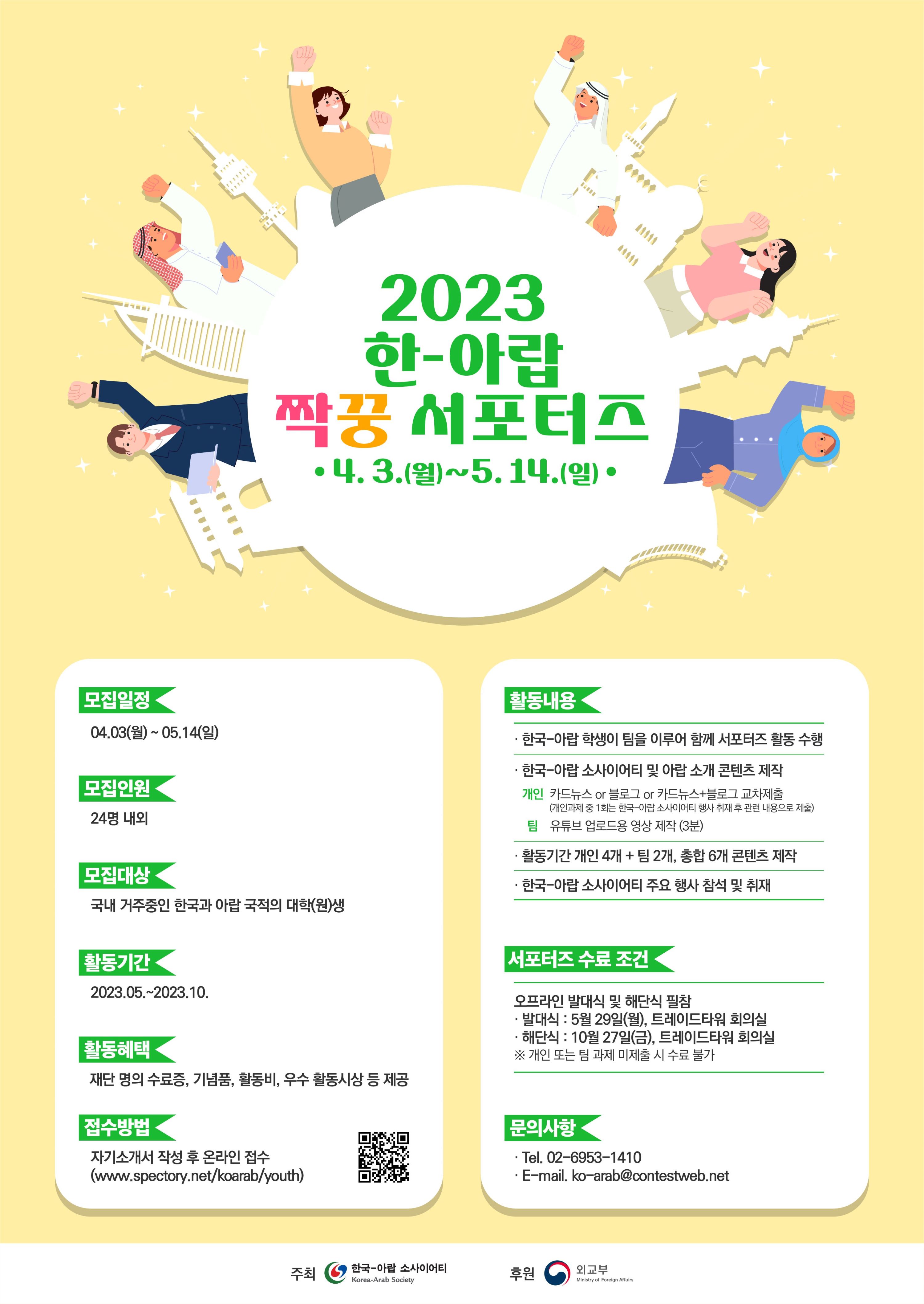 - 한국-아랍 학생이 팀을 이루어 함께 서포터즈 활동 수행 (오프라인 발대식 및 해단식 필참)