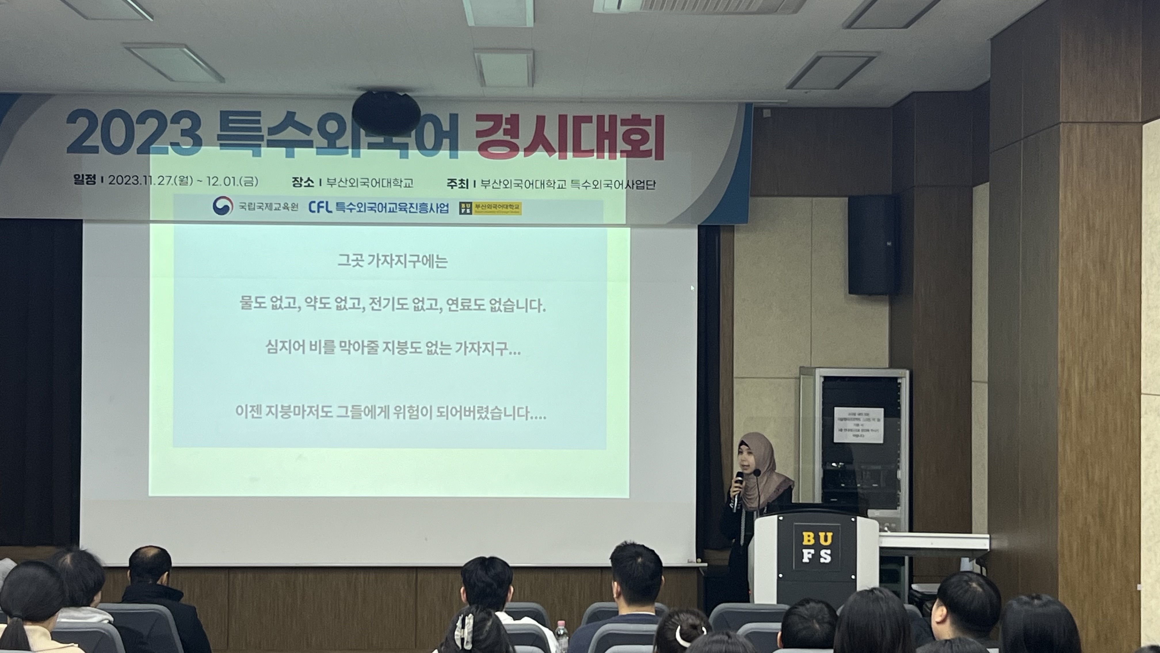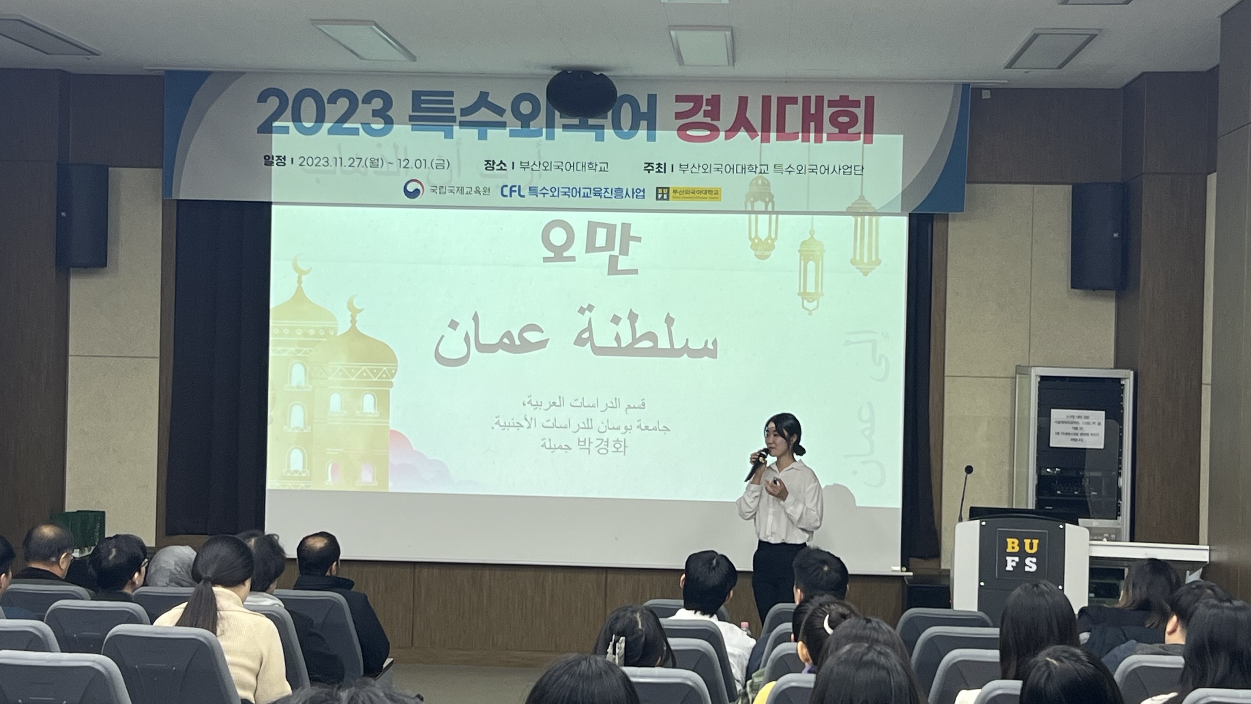 학과게시판 포토게시판 2023 아랍인의 밤 (특수외국어 경시대회) 2023년 11월 30일 아랍인의 밤 행사를 진행했습니다.9명의 학생들이 특수외국어 경시대회에 참여했습니다. 아랍학과관리자2023. 12. 14조회수805 0 등록된 댓글이 없습니다. 2024 의료 컨시어지 아랍어 교…목록2023 아랍인의 밤 (초청강연회…