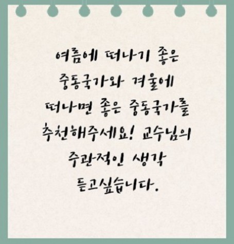 아랍 지역을 공부하는 학생으로서 아랍 지역으로 유학 내지 연수를 다녀오는 것은 본인의 학습에 당연히 큰 도움이 됩니다.