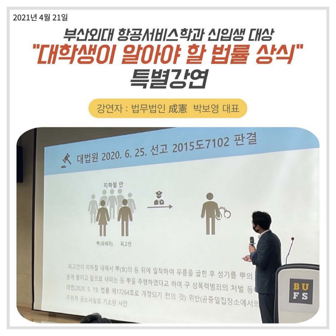 ✏2021년 4월 21일, 법무법인 성헌 박보영 대표님의 "대학생이 알아야 할 법률 상식"