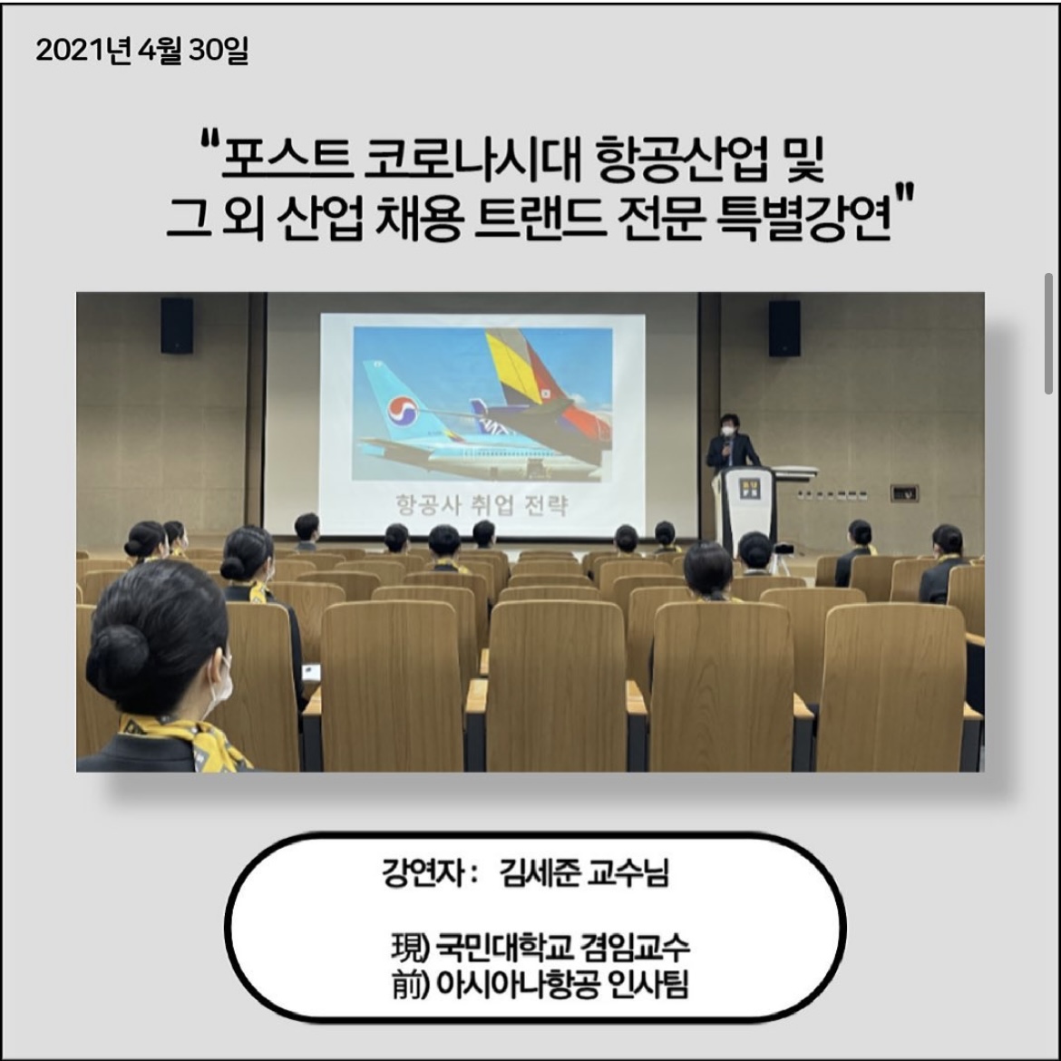 ✏2021년 4월 30일, "포스트 코로나시대 항공산업 및 그 외 산업 채용 트랜드 전문 특별강연" 이 진행 되었습니다!