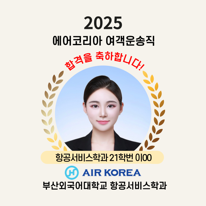 취업정보 취업명단 [지상직] 2025년 에어코리아 합격자 이OO 합격을 진심으로 축하드립니다.자랑스러운 부산외대인으로의 멋진 앞날을 기원합니다. 항공서비스학과관리자2025. 3. 7조회수376 0 등록된 댓글이 없습니다. [지상직] 2025년 에어코리아 …목록[객실승무원] 2024년 플라이나…