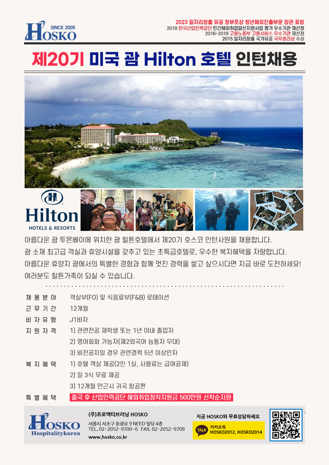 <미국 괌 힐튼호텔 제20기 인턴 채용>정보입니다.