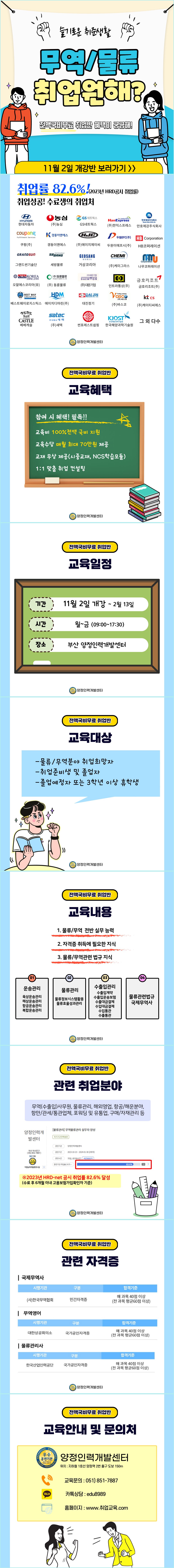 학과 게시판 공지사항 [부산전액국비]물류/무역/포워딩/유통/통관 취업반 모집 부산양정인력개발센터2023. 10. 27 고용노동부에서 전액지원받는 취업교…목록관광취업반 올해 마지막 모집반! …삭제수정
