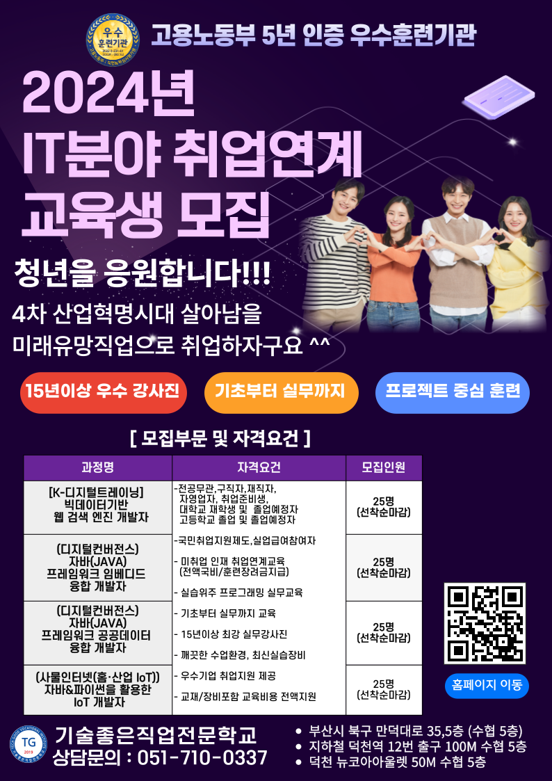훈련기관명 : 기술좋은직업전문학교(고용노동부 선정 5년인증 우수훈련기관)