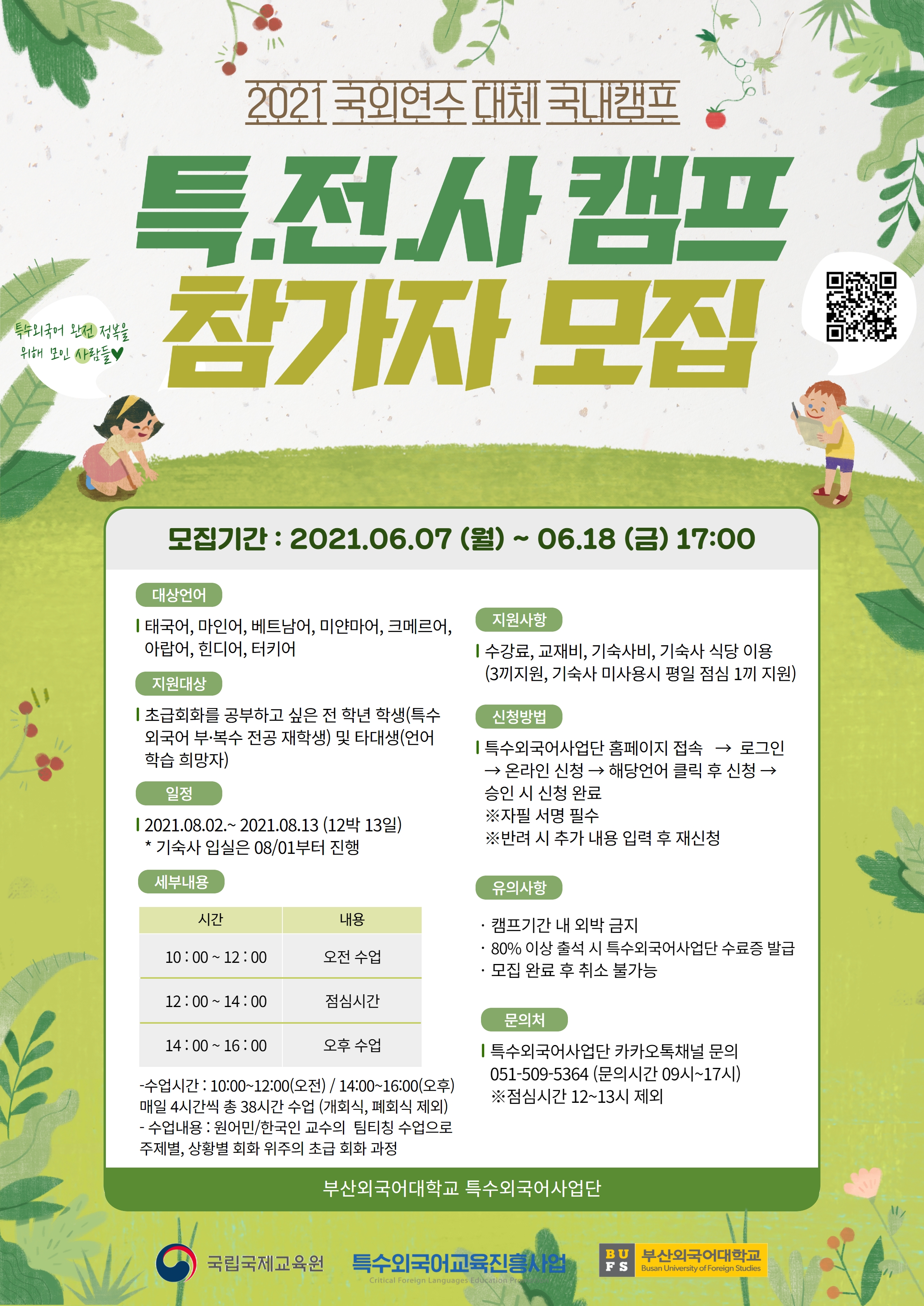 - 특수외국어사업단 카카오톡채널 문의 or 051-509-5364(문의시간 : 09시~17시)