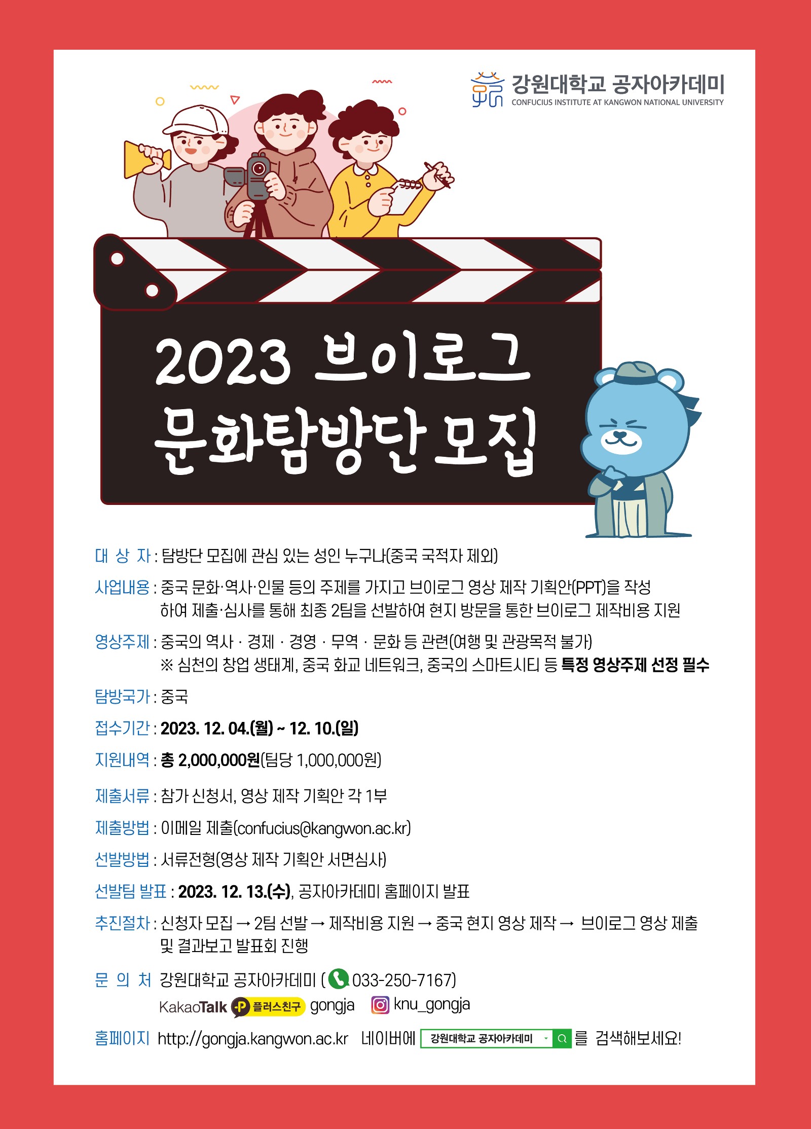 게시판 이전자료 24.10. 2023 브이로그 문화탐방단 모집 안내 첨부파일2023_브이로그_문화탐방단_모집_안내.hwp(234.0K) 중국학부관리자2024. 10. 22조회수248 0 등록된 댓글이 없습니다. 2024학년도 HSK 정기시험 일…목록2023-2 제 3회 부산외국어대…