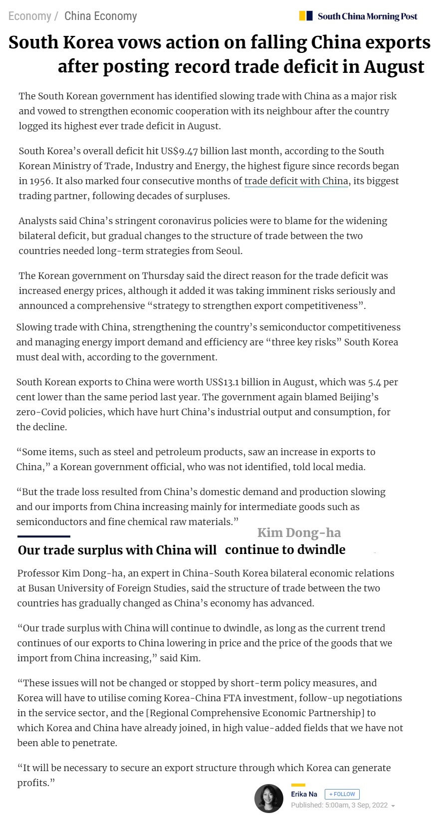 게시판 News 김동하 교수, South China Morning Post 인터뷰 (2022.9.3) 중국학부관리자2022. 9. 3조회수515 0 등록된 댓글이 없습니다. [2022-2학기] 수강 정정 기…목록김동하 교수, 한중수교 30주년 …