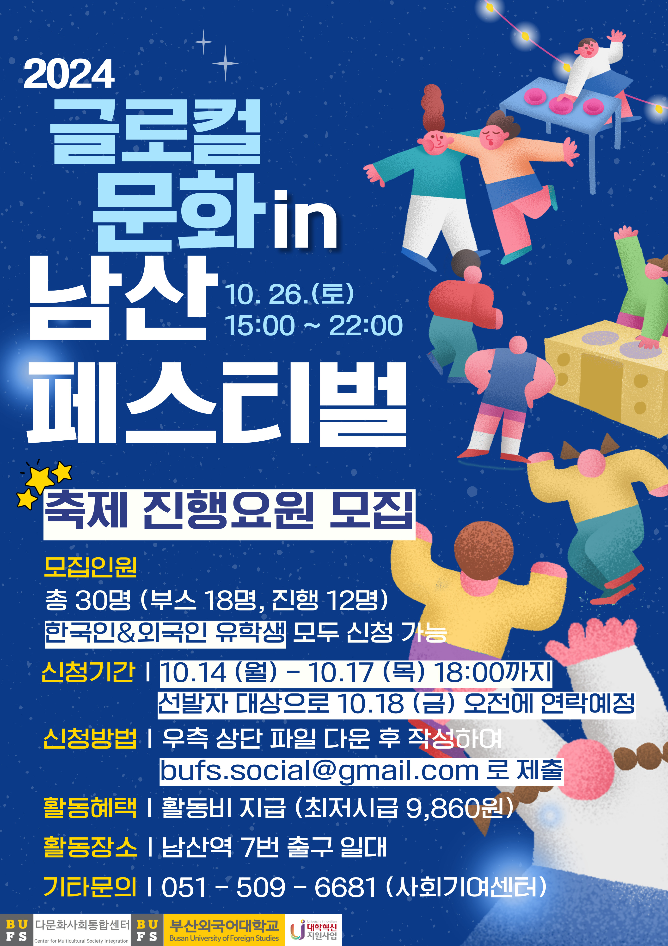 - 모집인원: 총 30명(부스 18명, 진행 12명), 한국인&외국인 유학생 모두 신청 가능