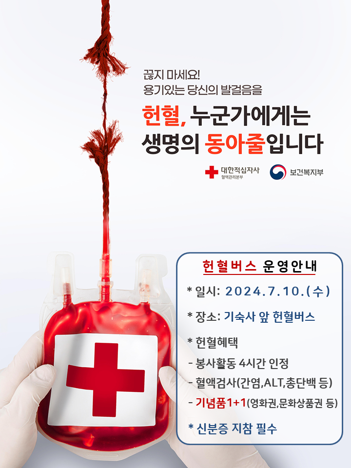 장소 : 기숙사 앞 1대 (헌혈버스를 이용한 헌혈 실시)