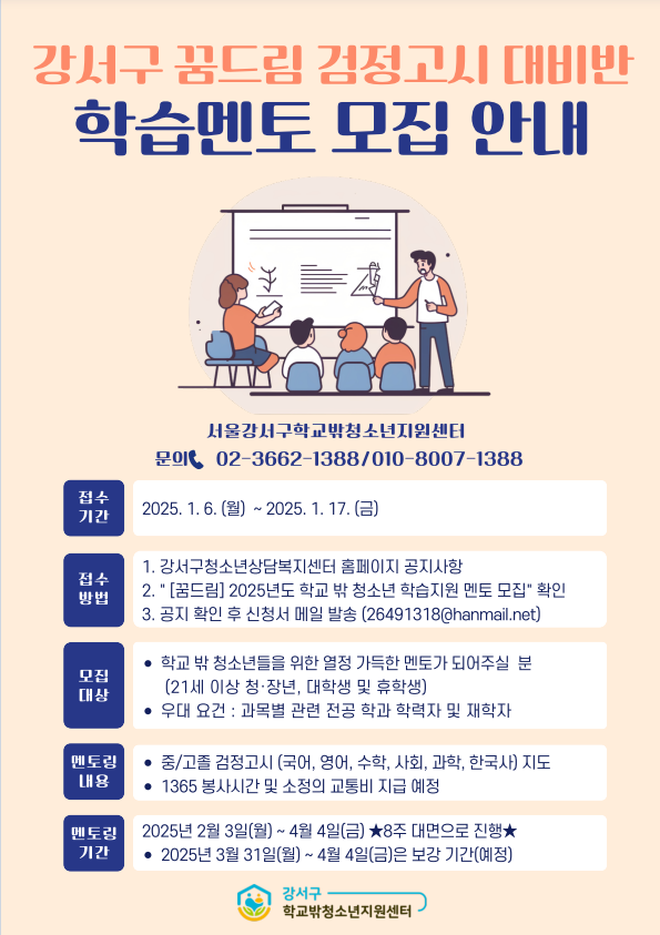 - 2025년 4월 검정고시대비반 학습지도 멘토 모집