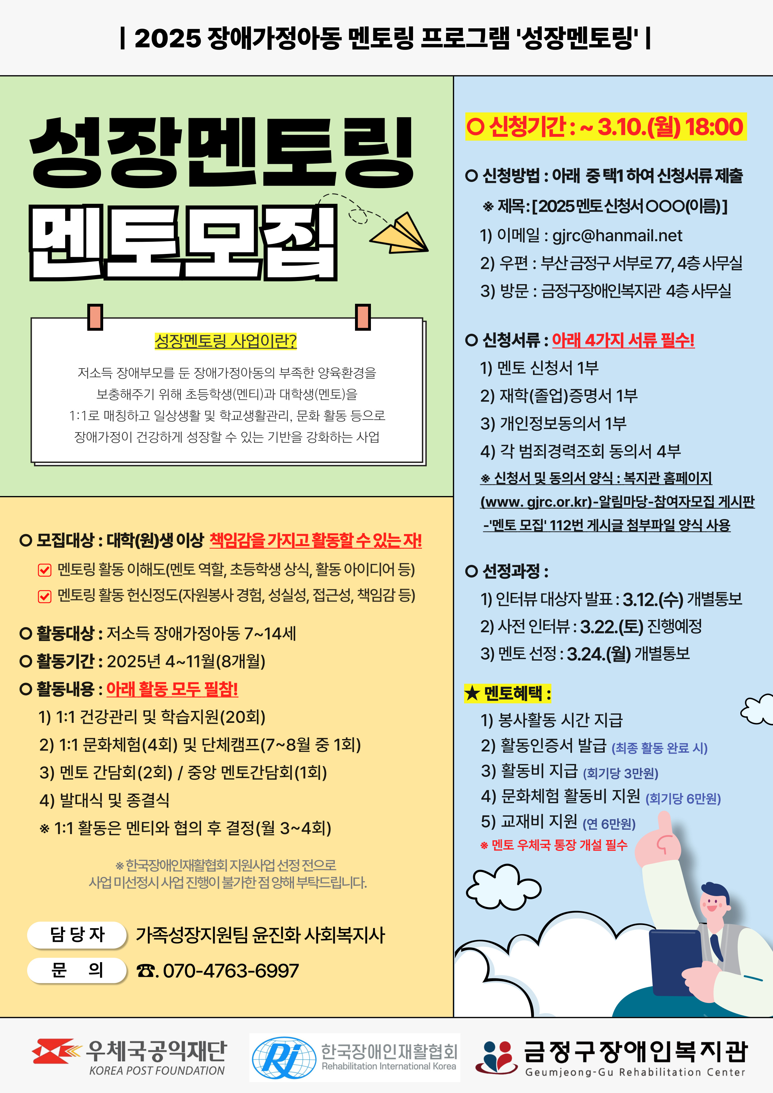 2025년 장애가정아동 멘토링 프로그램 성장멘토링 멘토 모집