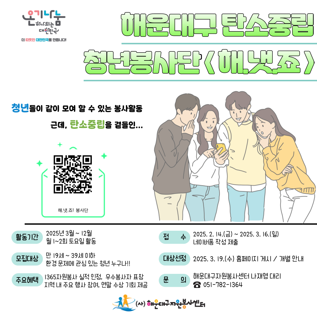 해운대구 탄소중립(Net-Zero) 청년봉사단 [해.냇.죠] 모집 안내