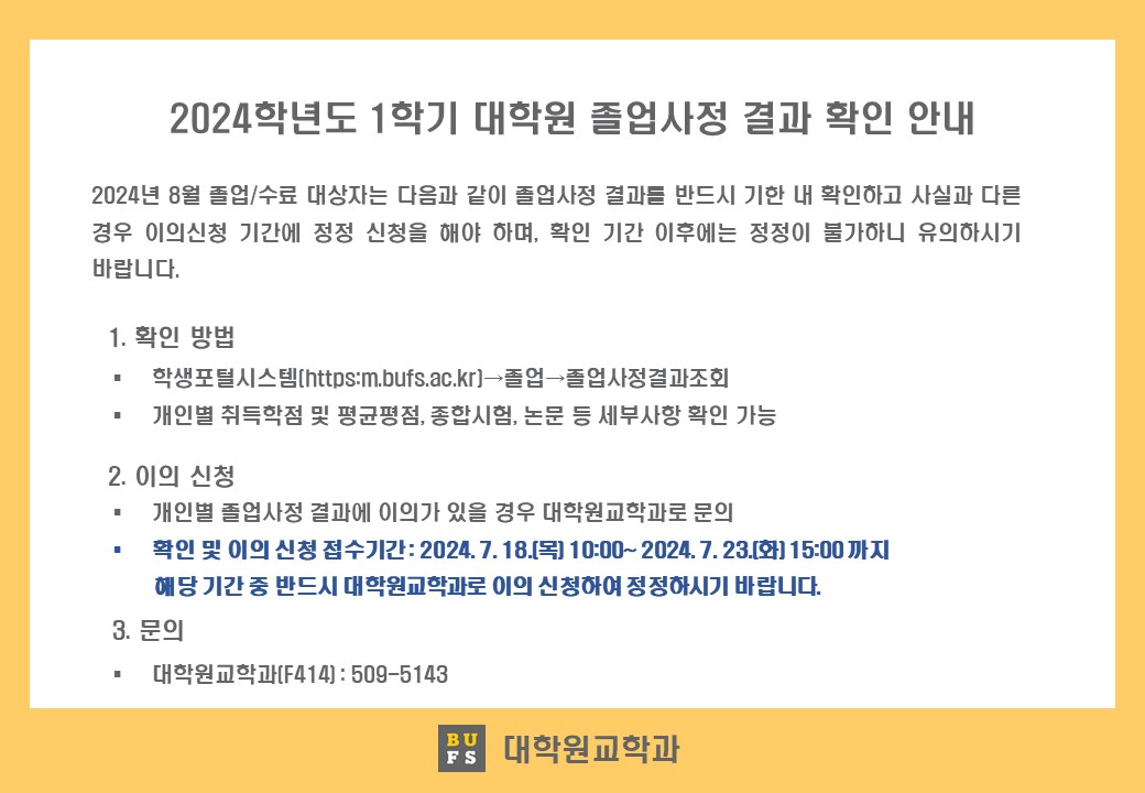 공지사항 2024학년도 1학기 대학원 졸업사정 결과 확인 안내 교육대학원관리자2024. 7. 17조회수284 대학 하계 집중휴무(7/29~8/…목록2024년 하반기 인천시 대학(원…