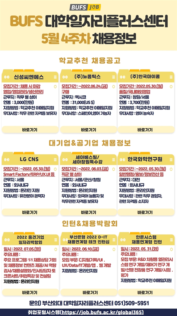 학과게시판 2022.05.26 이번주 채용공고 유럽지역통상학과관리자2022. 5. 26조회수585 0 등록된 댓글이 없습니다. 2022-06-02 이번주 채용공…목록2021.08.06. 이번주 채용…