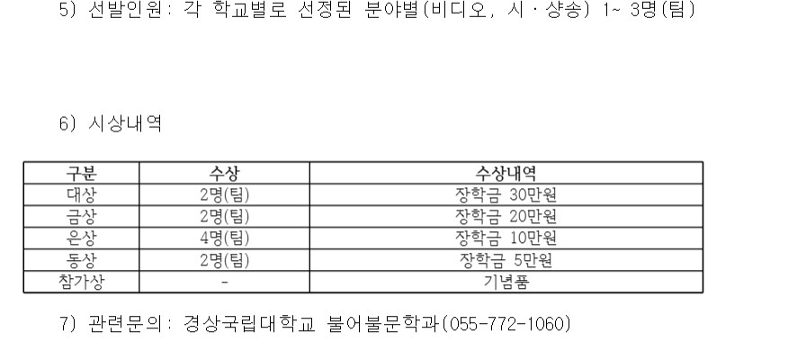 - 지원 방법 관련 문의 : 부산외국어대학교 프랑스어과 사무실 ☎051-509-5581