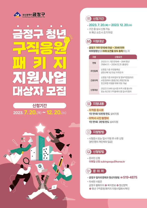 학과게시판 자료실 금정구 청년 구직응원 패키지 지원사업 대상자 자세한 내용은 포스터를 확인 바랍니다. 프랑스어과관리자2023. 9. 18조회수536 0 등록된 댓글이 없습니다. [채용공고] 2023년 하반기 L…목록2023학년도 가을학기 한국어도우…