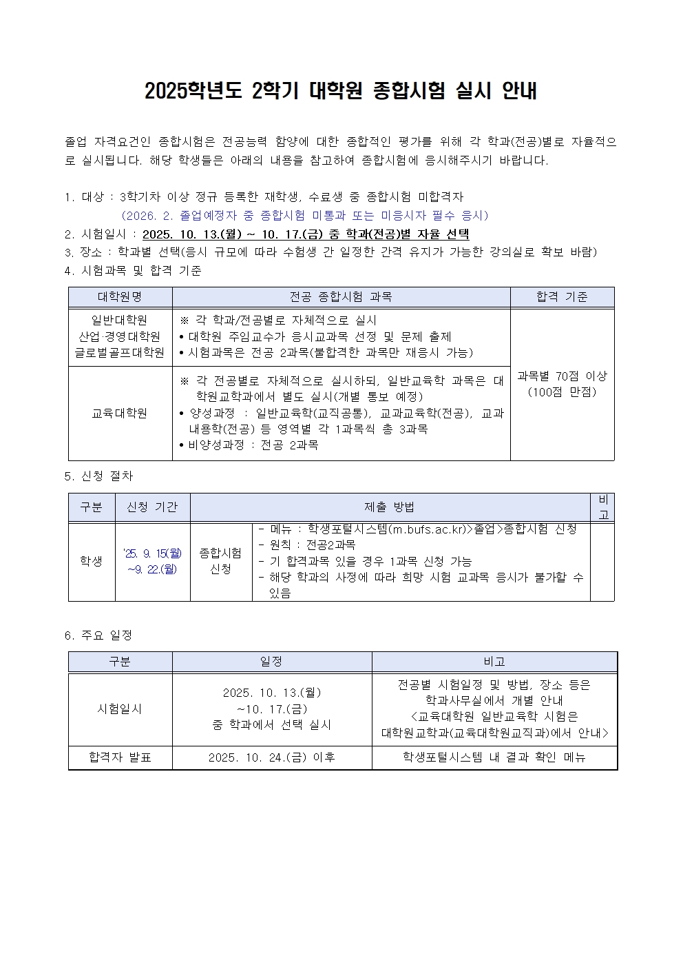 2025학년도 2학기 대학원 종합시험 실시 안내