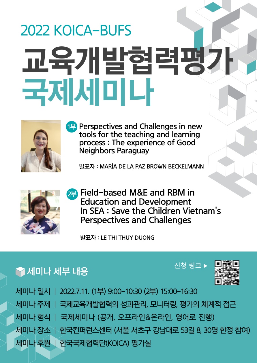 학과게시판 교내외활동정보 2022 KOICA-BUFS 교육개발협력평가 국제세미나 2022 KOICA-BUFS 교육개발협력평가 국제세미나 외교국제개발학부관리자2022. 7. 18조회수596 0 등록된 댓글이 없습니다. 2022학년도 1학기 외교국제개발…목록2021-2학기 취업커뮤니티Ⅰ 교…
