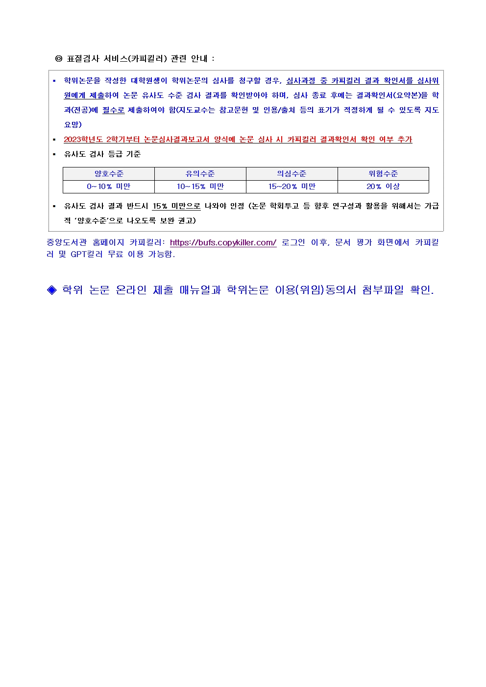 공지사항 2025년 후기(8월) 학위논문 등 제출 안내 첨부파일학위논문온라인제출매뉴얼.pdf(2.1M)학위논문이용위임동의서.hwp(164.5K) 카피킬러 일반대학원관리자2025. 5. 15조회수646 2025학년도 후기 대학원 최초모…목록2026년도 일본 정부(문부과학성…