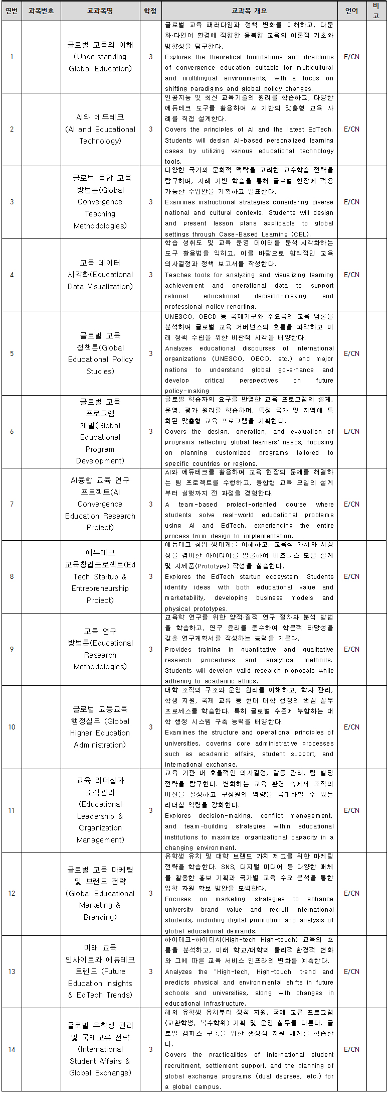 • 글로벌 교육 정책과 다문화·다언어 환경에 대한 깊이 있는 이해를 지닌 글로벌 교육 리더 함양