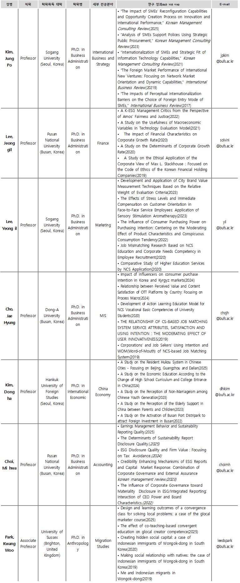 ▣ 교수진