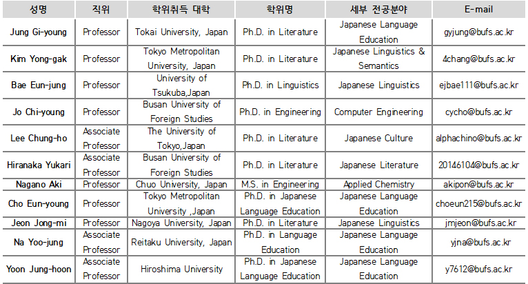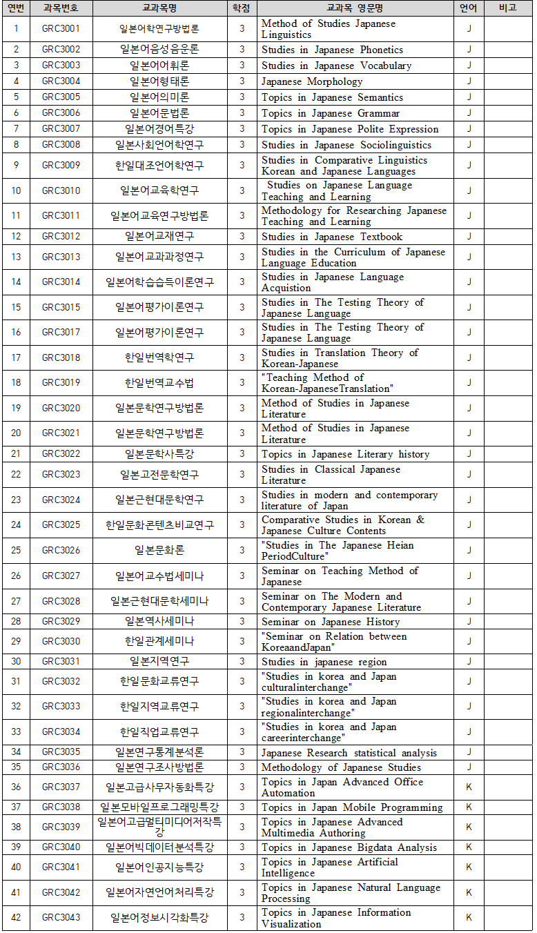 • 일본어학, 일본문학, 일본어교육학, 일본지역학 등의 연구를 통해 글로벌 환경에서 우수한 일본어 커뮤니케이션 능력을 갖춘 인재 양성