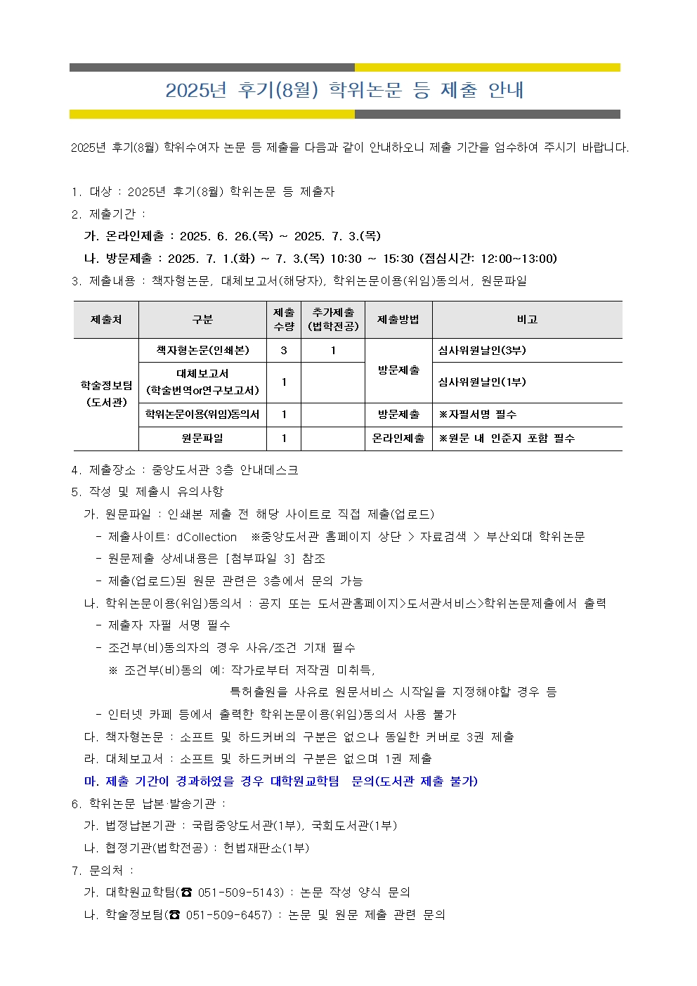 공지사항 2025년 후기(8월) 학위논문 등 제출 안내 첨부파일학위논문온라인제출매뉴얼.pdf(2.1M)학위논문이용위임동의서.hwp(164.5K) 카피킬러 통역번역대학원관리자2025. 5. 15조회수244 2025학년도 후기 대학원 최초모…목록2026년도 일본 정부(문부과학성…