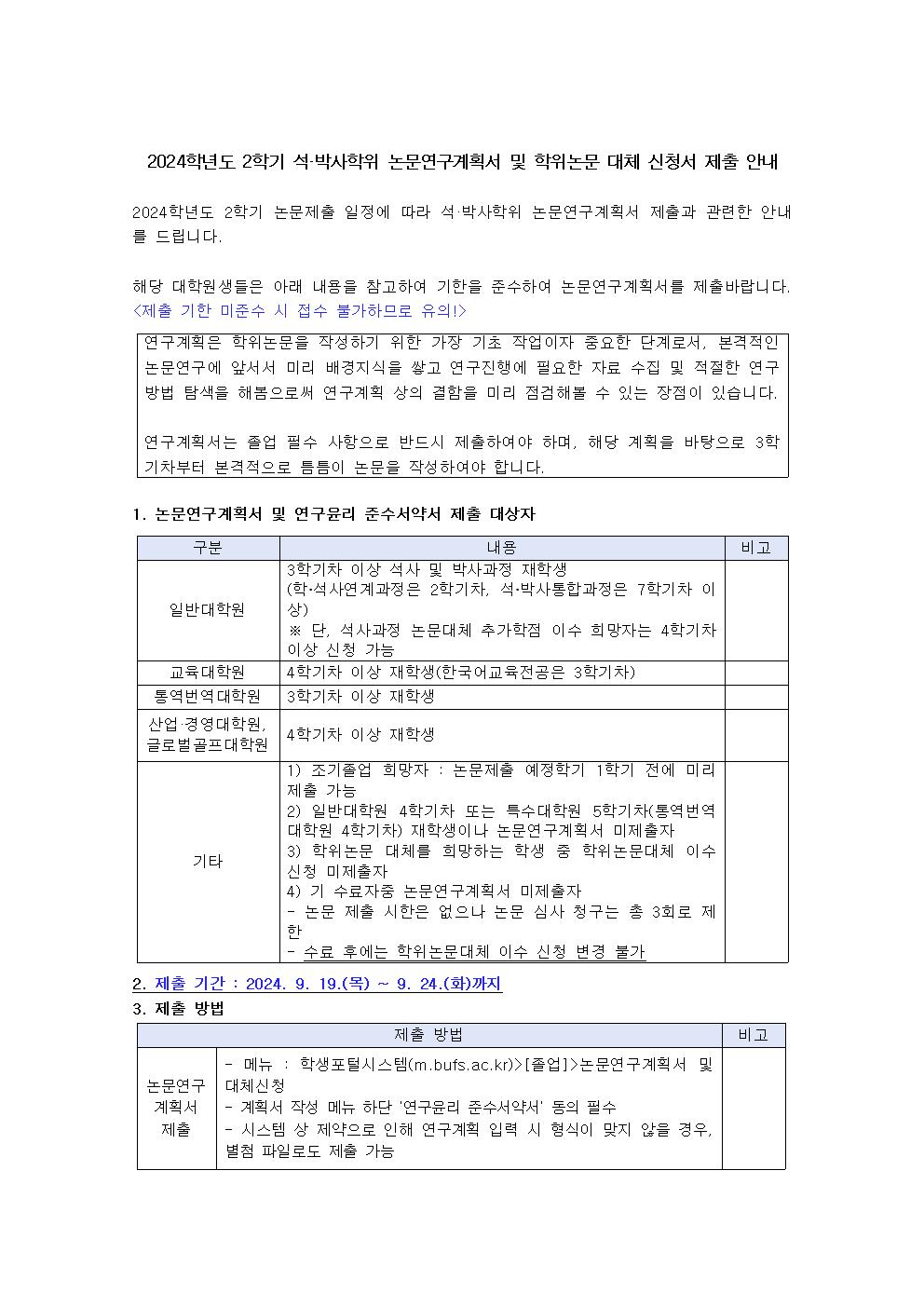 공지사항 2024학년도 2학기 석·박사학위 논문연구계획서 및 학위논문 대체 신청서 제출 안내 첨부파일[붙임1] 석사학위 청구논문 대체 신청서.hwpx(55.7K) 통역번역대학원관리자2024. 9. 11조회수314 2024학년도 2학기 대학원 석·…목록[한국국제교류재단] '제1차 한호…
