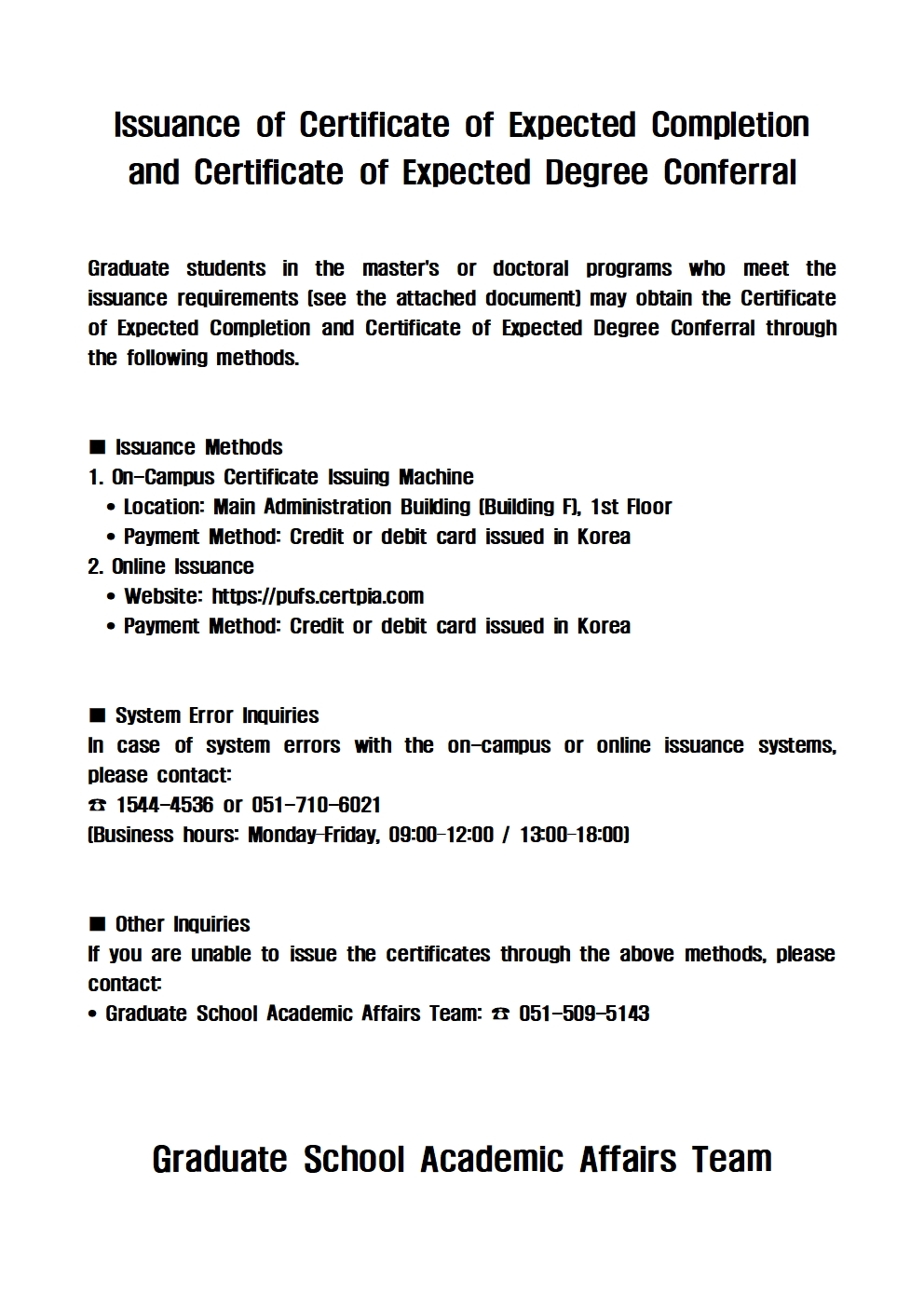 공지사항 대학원 수료예정증명서 및 학위수여예정증명서 발급 안내 Issuance of Certificate of Expected Co… 첨부파일수료예정증명서 및 학위수여예정증명서 자동 발급 요건.pdf(30.5K)온라인 발급 불가 시[학위수여예정증명서_발급신청서].pdf(57.7K)온라인 발급 불가 시[학위수여예정증명서_발급신청서].hwp(24.5K) 증명서온라인발급링크 통역번역대학원관리자2025. 11. 5조회수115 2025학년도 2학기 통역번역대학…목록BUFS RISE Regional…