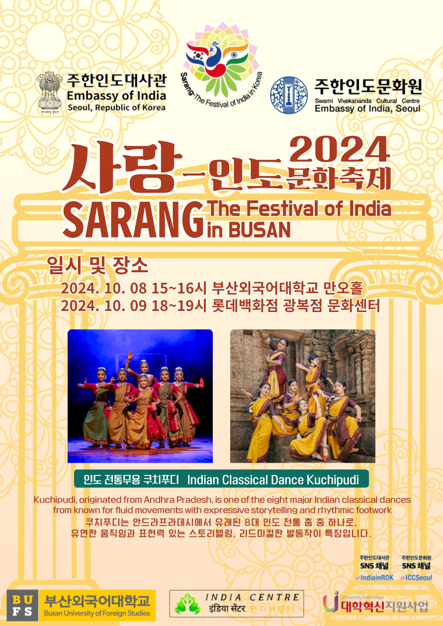 - 프로그램 명 : 2024학년도 사랑-인도문화축제(SARANG The Festival of India in Busan) 워크숍 및 공연 관람