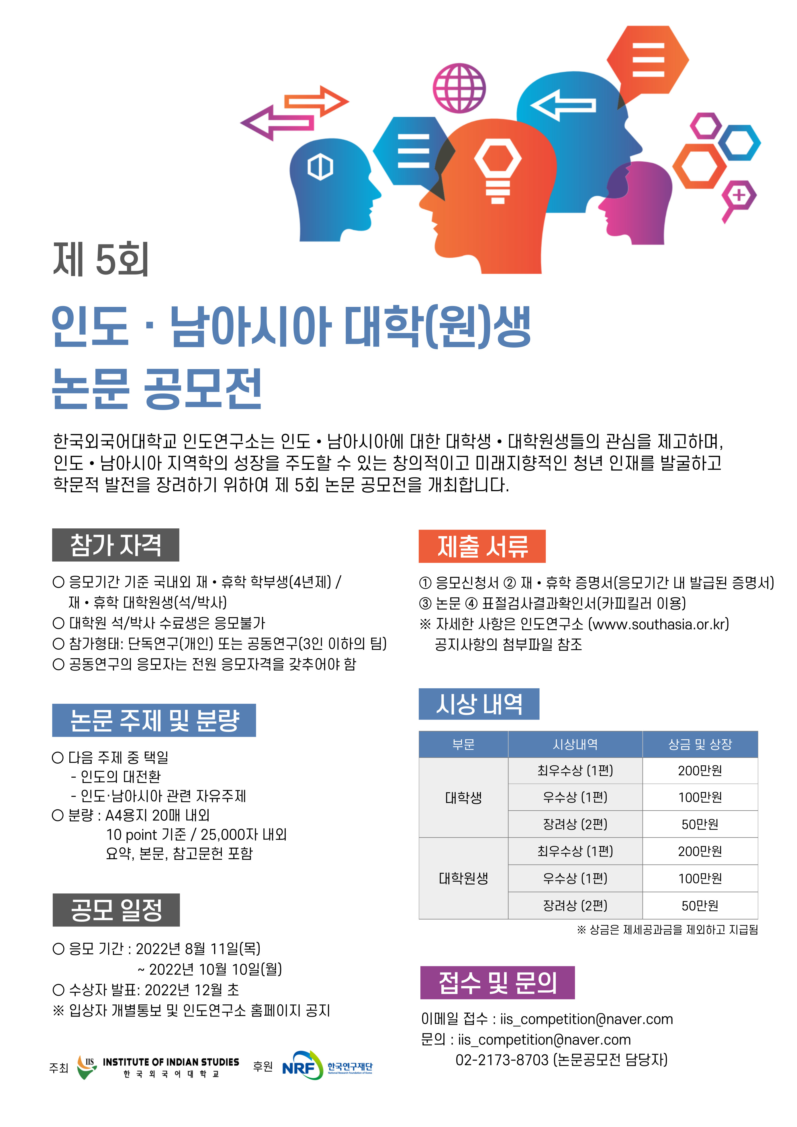 5회 인도·남아시아 논문 공모전 홍보물(국문)