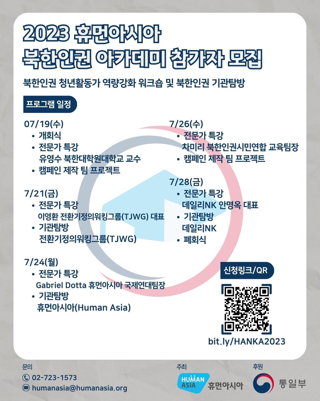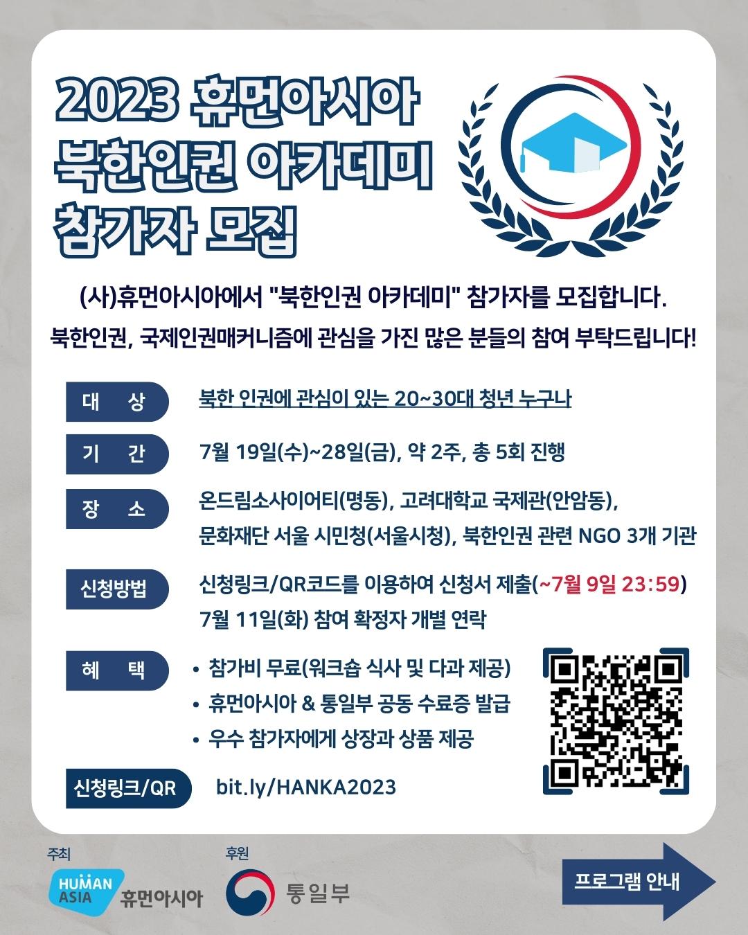 북한인권 아카데미 참가자 모집 공지사항: http://humanasia.org/bbs/board.php?bo_table=notice&wr_id=255