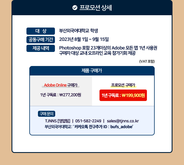 [티제이앤앤에스] 부산외국어대학교 Adobe 학생용 라이선스 공동구매 홍보