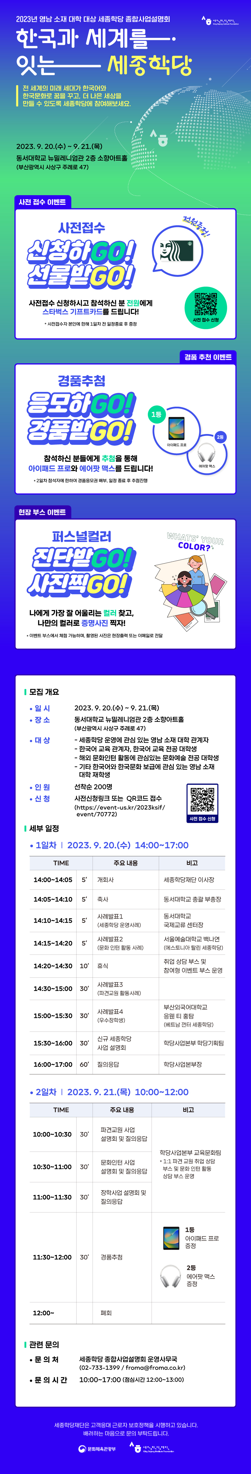 이번에 세종학당에서 사업 설명회가 있어 안내드립니다.