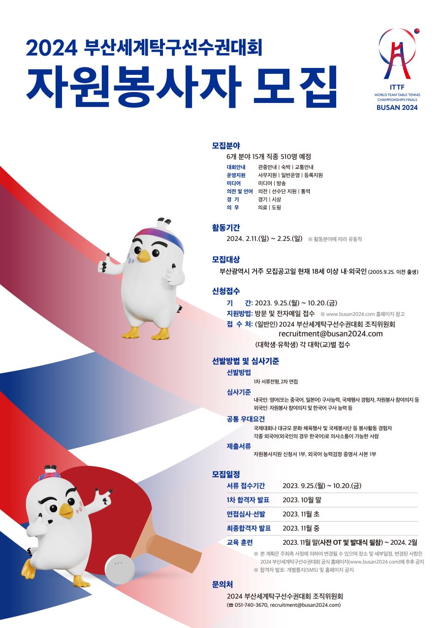 2024 부산세계탁구선수권대회자원봉사자 모집
