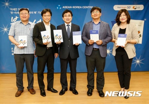 김영선 한-아세안센터 사무총장이 23일 서울 한-아세안센터 아세안홀에서 열린 '아세안 50주년' 및 '한-아세안 문화교류의 해' 기념 북콘서트에 참석해 저자들과 기념촬영을 하고 있다.