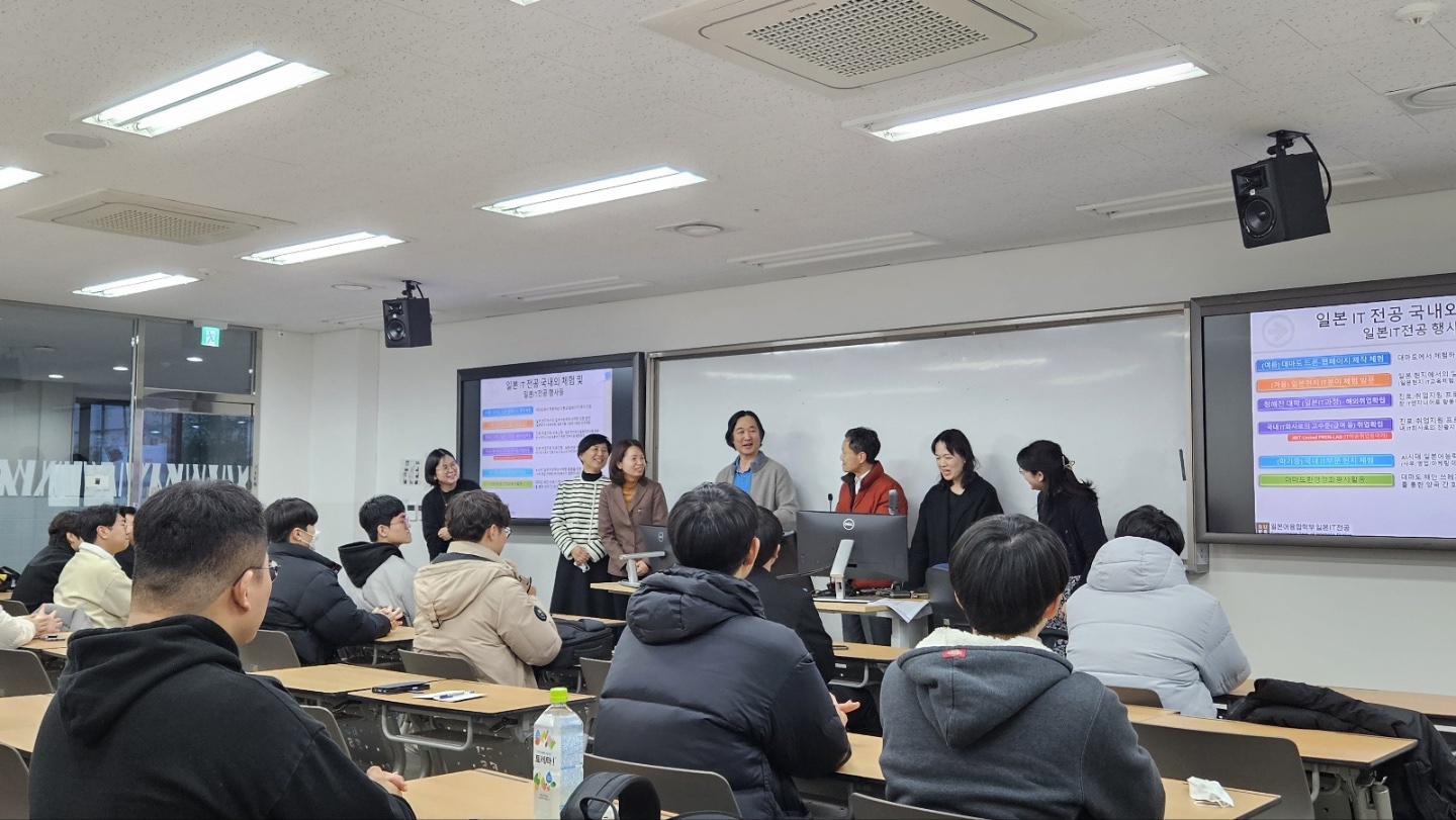 전공생활 일본IT 전공 설명회 및 개강총회 2024년 3월 14일 일본IT 개강총회가 열렸습니다! 전공 설명 및 국내외 활동과 일본IT 동아리인 JBIT와 J-DX 소개 등이 있었습니다. 참석해주신 분들 감사합니다. 일본IT전공2024. 3. 28 0 등록된 댓글이 없습니다. 라쿠고 공연목록JBIT-united 동아리