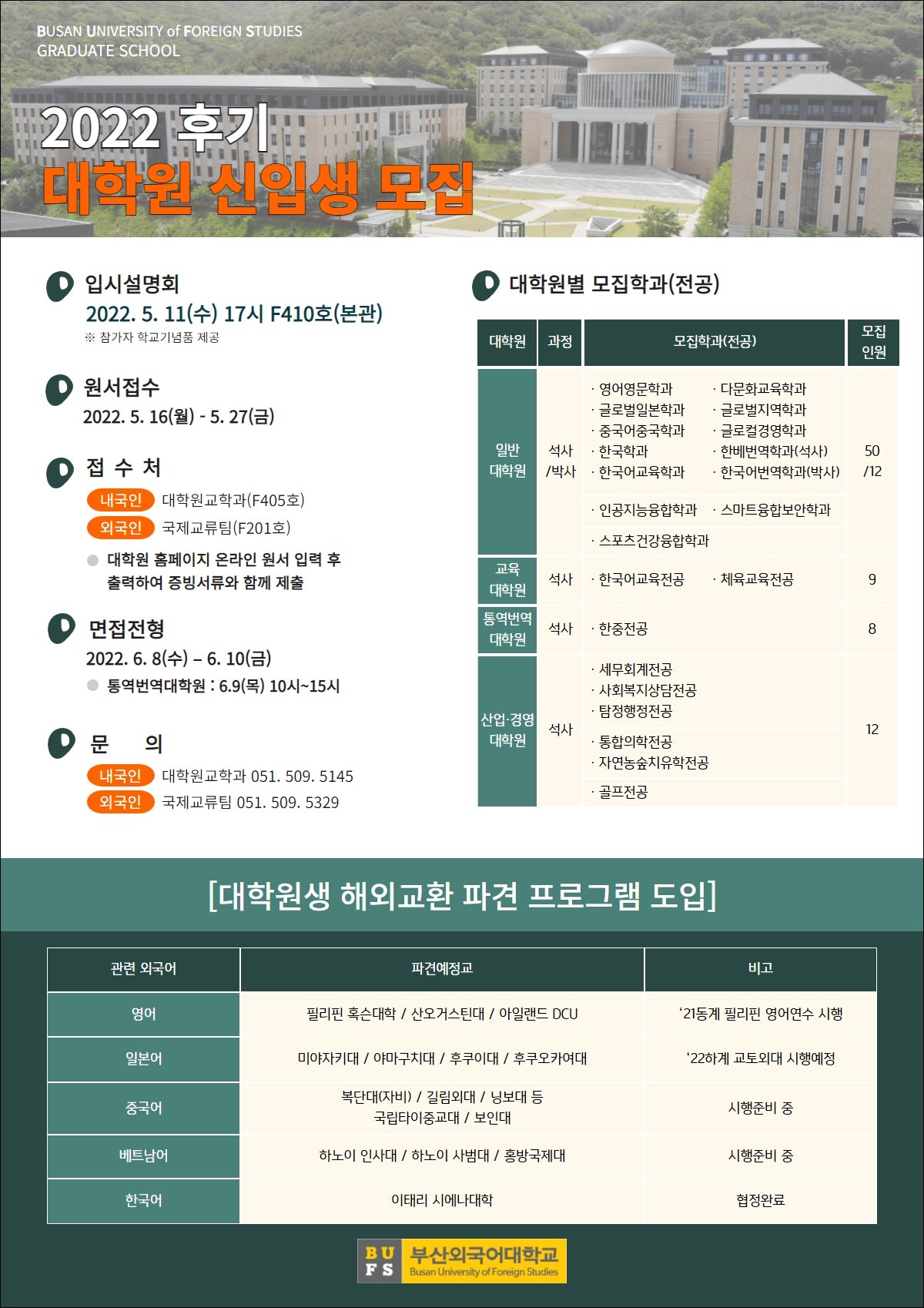 학과게시판 학과공지 2022 후기 대학원 신입생 모집 반갑습니다. 한국어교육학과 조교입니다.2022 후기 대학원 신입생을 모집합니다. 아래 내용 참고하셔서 일정에 유의하시길 바랍니다.** 원서접수 : 5/16(월) ~ 5/27(금) 면접기간 : 6/8 (수) ~ 6/10(금) 합격자발표(예정): 6/16 목 한국어교육학과관리자2022. 5. 13조회수1,167 0 등록된 댓글이 없습니다. 2022년 교원해외파업사업 선발 …목록베트남 지역 하노이1 세종학당 파…