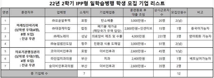 22년도 2학기 IPP사업단 일학습병행 사업 참여 학생 모집