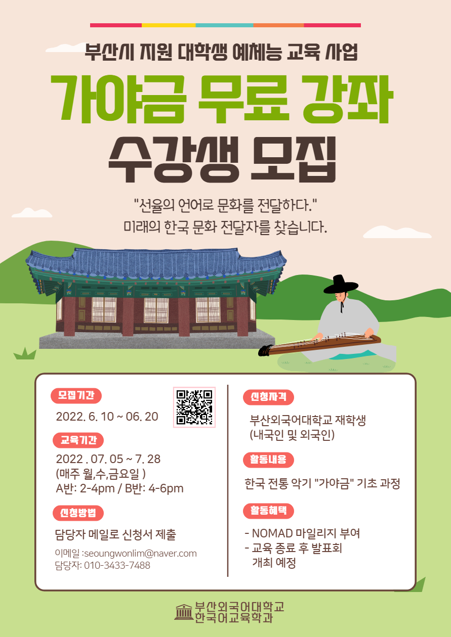 (수정)부산광역시 지원 대학생 예체능 교육사업 가야금 무료 강좌 수강생 모집 안내