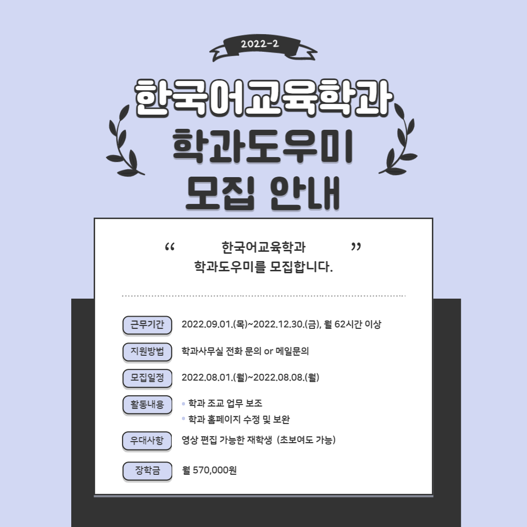 2022-2학기 학과도우미 모집 안내드립니다.