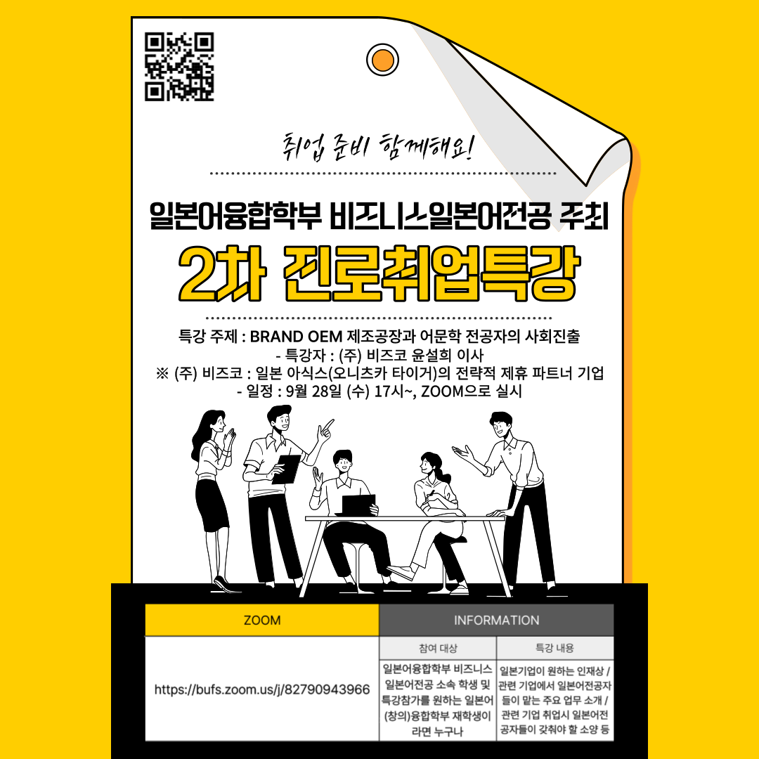 일본어융합학부 비즈니스일본어전공에서 주최하는 2차 진로취업특강 안내입니다.